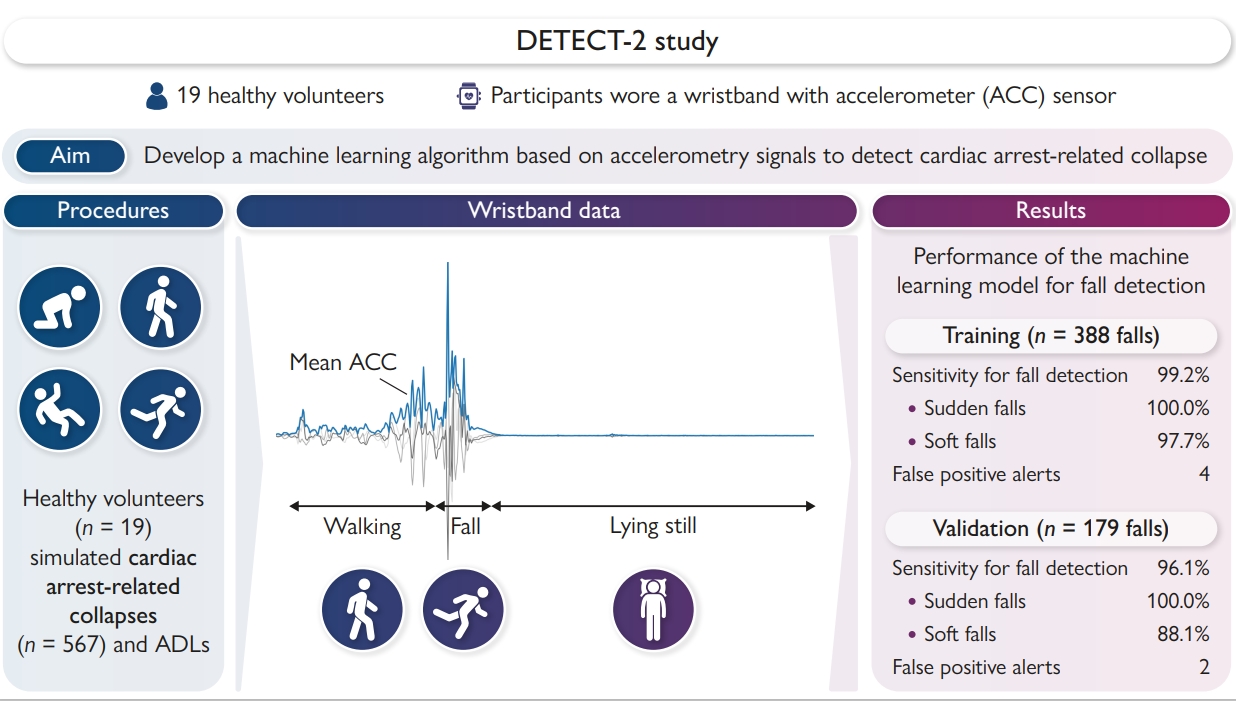 A machine learning model to detect falls mimicking cardiac arrest-related collapse based on wrist-derived accelerometry: the DETECT-2 study